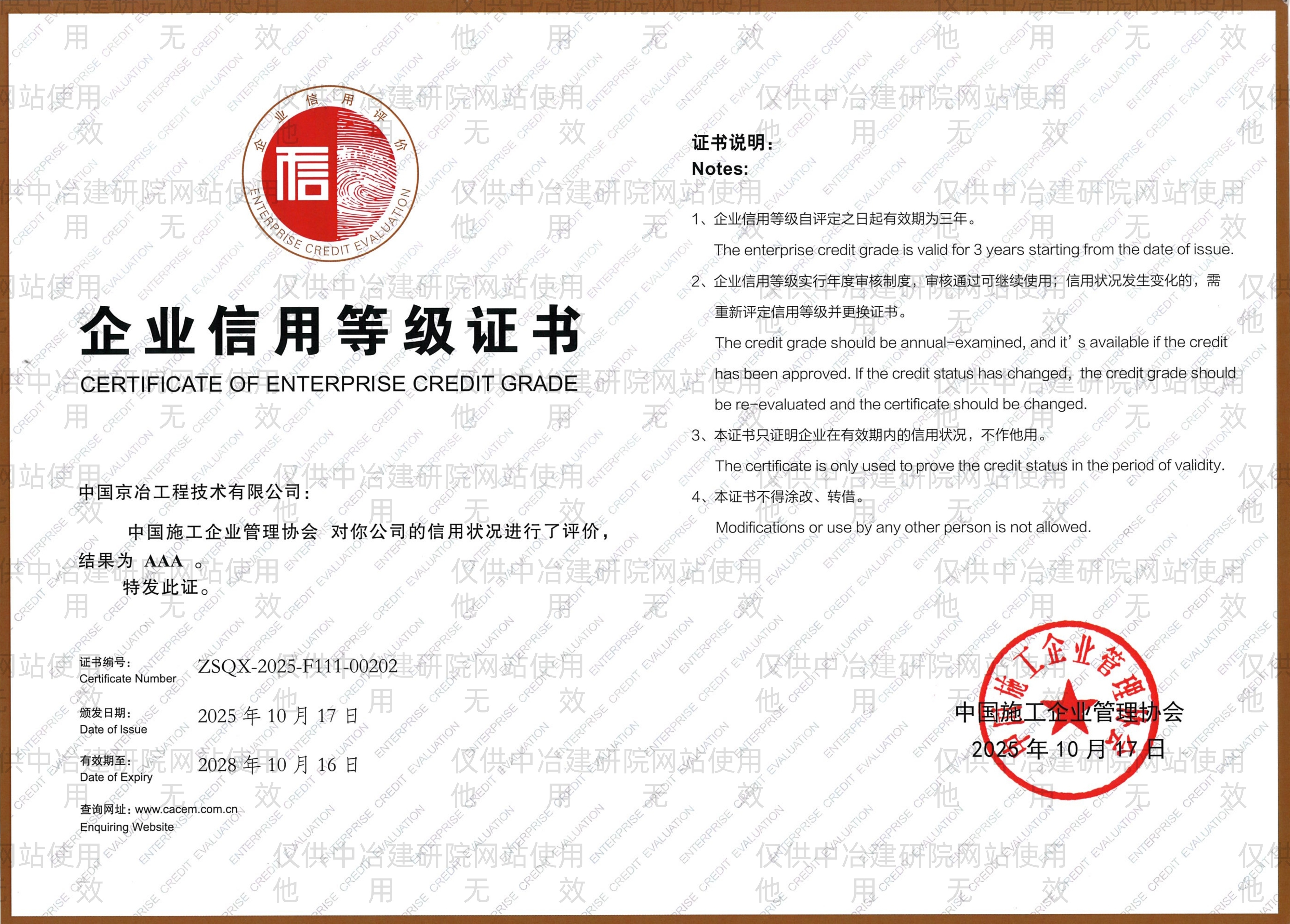 企業信用AAA等級證書